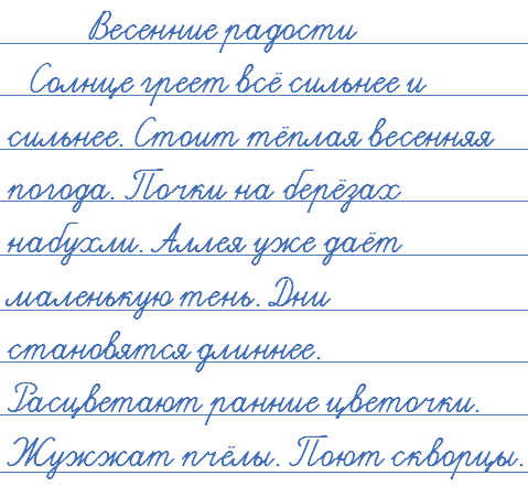 Со..нце греет всё сильнее и сильнее ст..ит тёплая в..сенняя п..года почки на б..рёзах набухли аллея уже даёт маленькую тень дни становятся длиннее расцветают ранние цв..точки жужжат пчёлы п..ют скв..рцы.