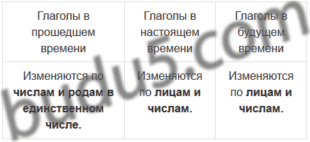 | Глаголы в прошедшем времени | Глаголы в настоящем времени | Глаголы в будущем времени |