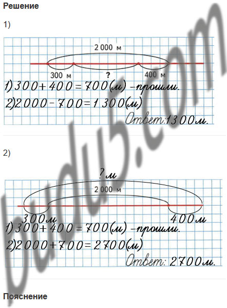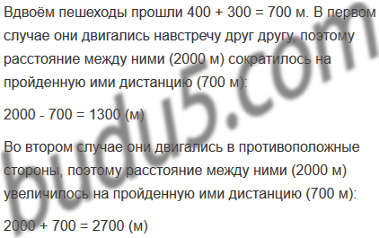 47. Из двух посёлков, расстояние между которыми 2000 м, вышли одновременно в противоположных направлениях 2 человека. Каким может быть расстояние между этими пешеходами, когда первый пройдёт 400 м, а второй - 300 м?