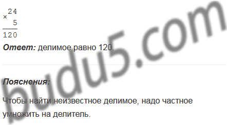 Чему равное делимое, если делитель равен 24, а частное - 5?