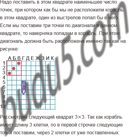 На поле размером 1010 клеток для игры в "Морской бой" поставили корабль в прямоугольник размером 13 клетки. Можно ли, сделав 33 выстрела, наверняка в него попасть?