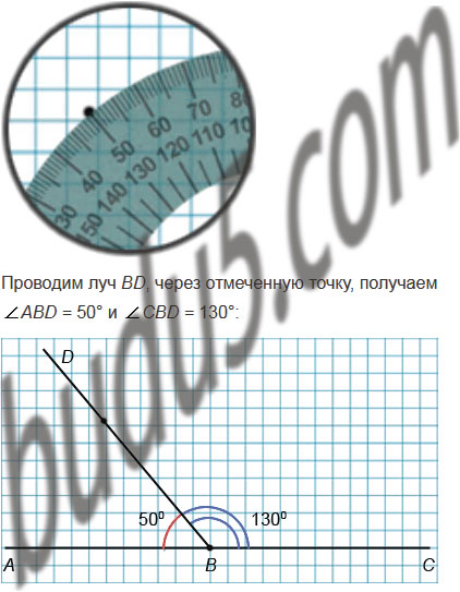 Начертите развёрнутый угол АВС и проведите луч BD так, чтобы градусные меры углов ABD и CBD относились как 5 : 13.
