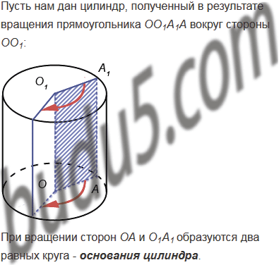 Объясните, что называют основанием, боковой поверхностью, высотой, образующей цилиндра.