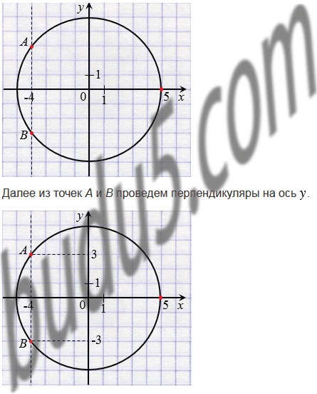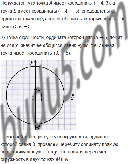 1) Найдите ординату точки окружности, абсцисса которой равна: 5; 4.