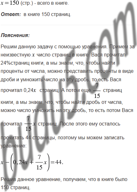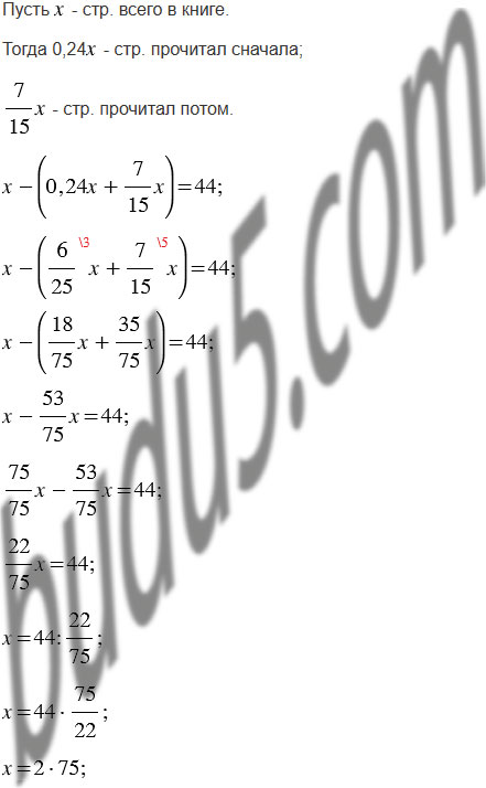 Вася прочитал 24%страниц книги, а потом еще страниц книги. После этого ему осталось прочитать 44 страницы. Сколько страниц в книге?
