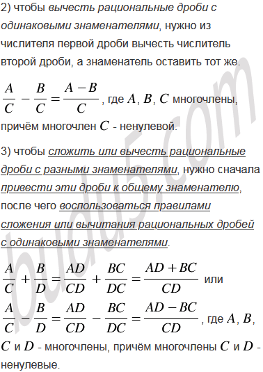 7. Сложение и вычитание рациональных дробей с одинаковыми знаменателями.