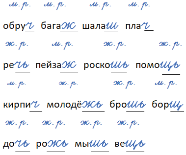кирпич (м. р.) молодежь (ж. р.) брошь (ж. р.) борщ (м. р.)