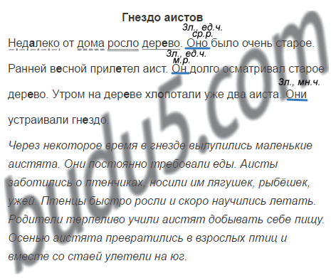 1. Недалеко, росло, дер..во, от, дома.4 2. Было, старое, оно, очень. 3. В..сной, аист, ранней, прил..тел. 4. Долго, осматривал, он, дер..во, старое. 5. Утром, на, уже, дер..ве, аиста, хл..потали, два. 6. Устраивали, они, гн..здо.